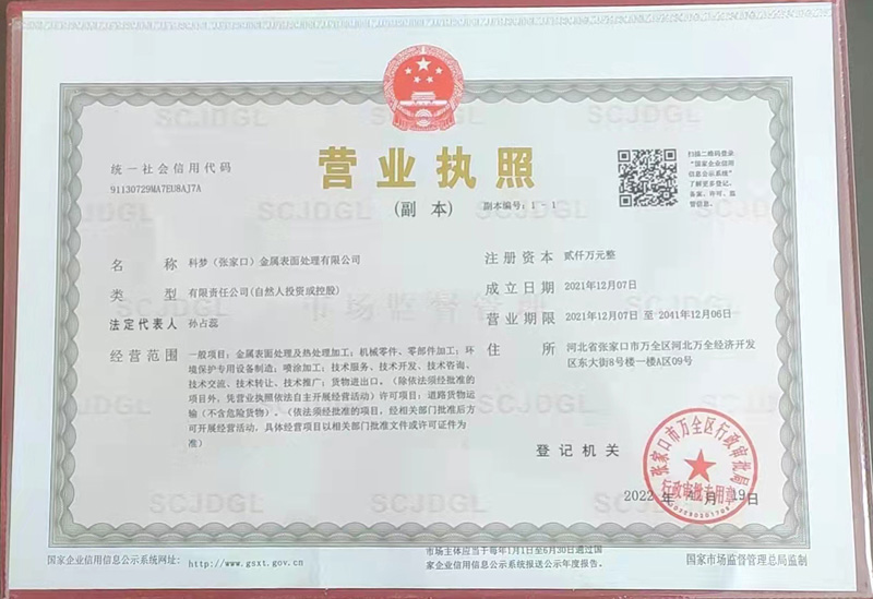 版權(quán)所有:科夢(張家口)金屬表面處理有限公司
